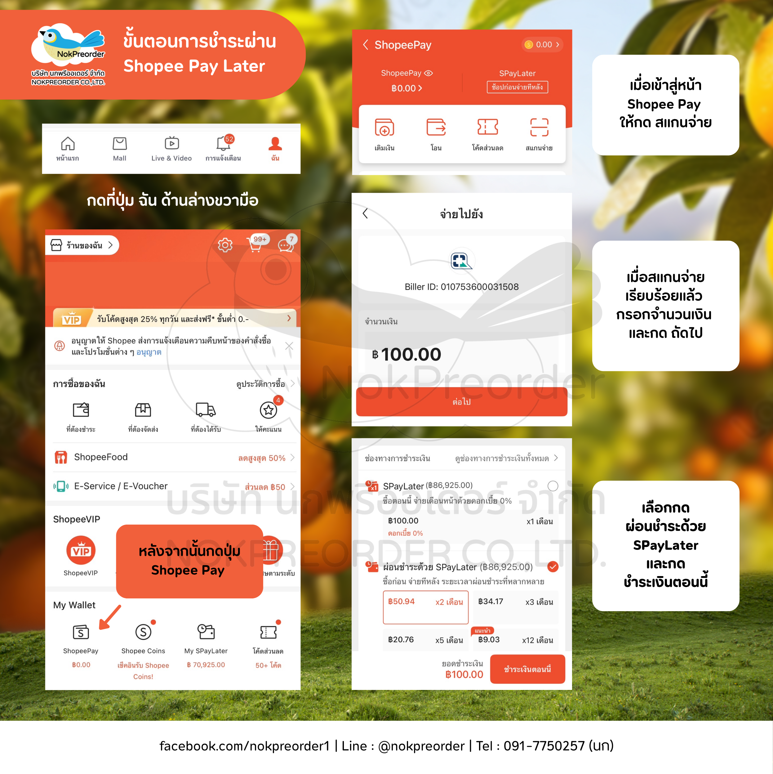 1.หลังจากตกลงต้องการจะสั่งซื้อสินค้ากับทางร้าน Nokpreorder แล้ว ไม่ว่าจะทางแชทหน้าเว็บไซด์ เพจ Line email หรือคุยทางโทรศัพท์